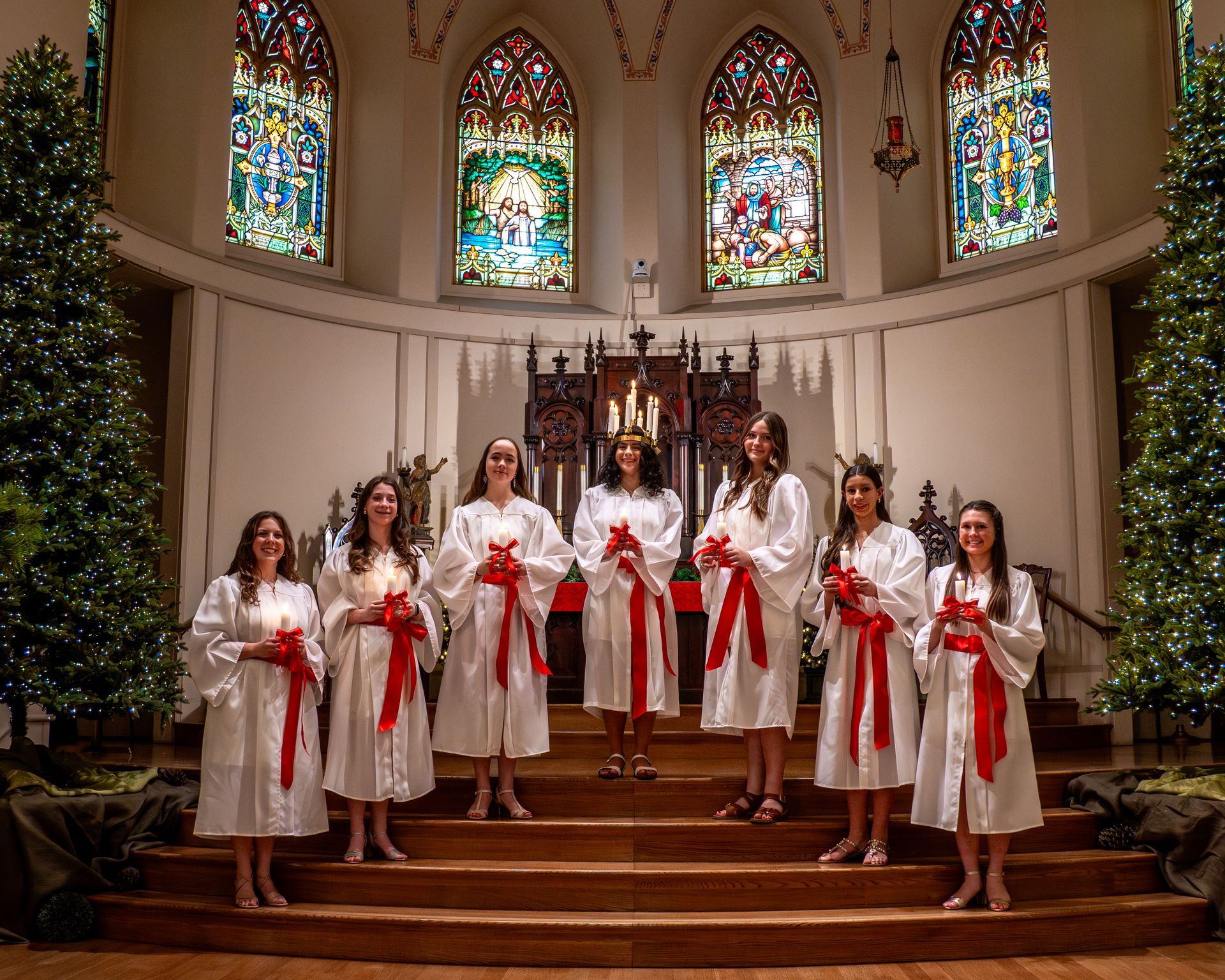 Held mid-December, the Santa Lucia worship service and festival celebrates St. Lucy of Scandinavia and the light she brought to her community. A female high school youth applies each year to be the Santa Lucia, and a committee selects one individual who exemplifies the St. John’s mission of “Living God’s Love in the World” to serve in this role. Other female high schoolers join the Santa Lucia and serve in her court, and younger youth of all genders dress-up as Cookie Elves to help during the festival.